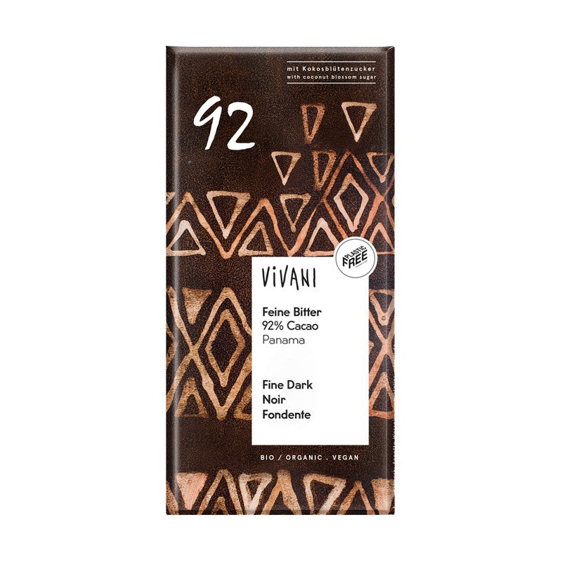 Chocolate negro 92% Panama con azucar de coco bio 80g Vivani
